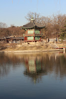 we arrived at the gyeongbokgung palace to be greeted by guards who did not talk or move. there were probably 8 of them in all different bright colored outfits. not really sure why there are active guards since no one lives in the palace anymore. the palace was originally completed in 1395 as the main royal palace. the name gyeongbokgung means "the palace greatly blessed by heaven." mount bugaksan is behind the palace and mount namsan is in the foreground making the palace placed in the heart of seoul. the palace was destroyed by the japanese during the japanese invasion (1592-1598) and a secondary palace was build named changdeokgung and served as the main palace. the palace we visited was left derelict for 270 years. it was finally reconstructed in 1867 only to be destroyed again by the japanese during the occupation. the current building is an effort to restore the palace and has been ongoing since 1990. once we were inside the palace grounds we realized it was HUGE. it must go on for acres with tons of buildings (each had their own purpose) as well as gardens. everytime we thought we were at the end we would discover quite a few additional buildings. there was also a section for a cemetary and statues.